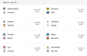 Vòng ⅛ Champions League – những cuộc đối đầu đáng mong đợi